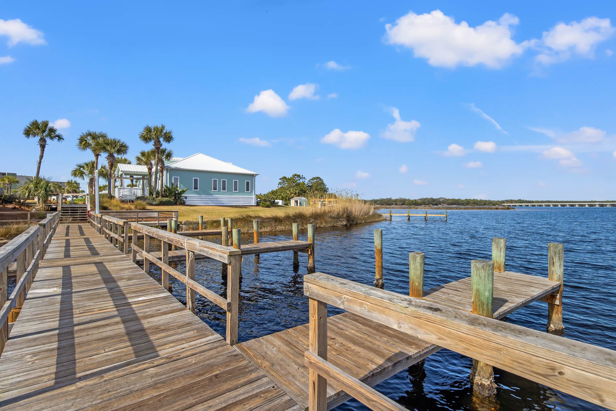 Fantastic gulf view from Living room balcony, 2 bedroom, 2 bath flat, Queen bed in Primary bedroom, 2 Twin beds in 2nd bedroom, TV's in both bedrooms, Tropical Décor, Internet Access in the condo. Fun family property! Note: Unit is in process of being painted a neutral color.  Pinnacle Port is a gated community with its own boat ramp and boat docks leading out to pristine Lake Powell (the State of Florida's largest coastal dune lake)